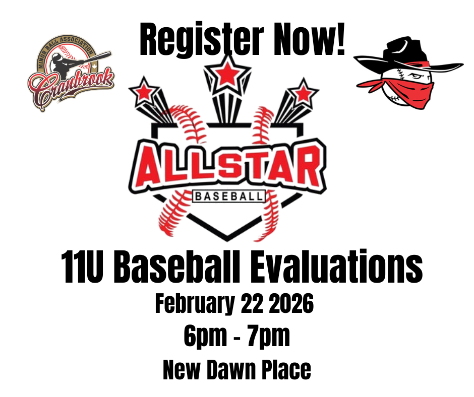 Think you’ve got what it takes to be a Bandit? Come show your skills at the Cranbrook Minor Ball Association 11U Bandit All Star Evaluations!