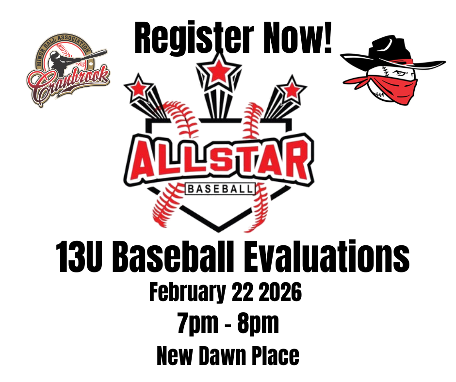 Think you’ve got what it takes to be a Bandit? Come show your skills at the Cranbrook Minor Ball Association 13U Bandit All Star Evaluations!